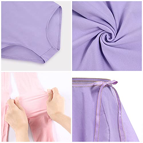 Vestito da Danza Classica per Ragazze Body da Ginnastica Manica Corta con Gonna a Portafoglio in Chiffon Collant con Piedi Costume da Ballo 4 Pezzi Set da Ballerina Viola 8-9 Anni