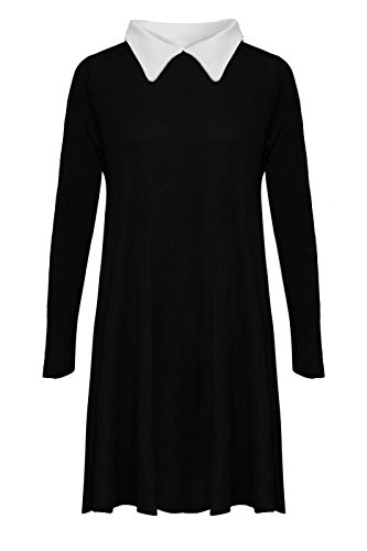 Vestito da donna a maniche lunghe con colletto svasato, stile casual, elasticizzato, svasato, taglia 40-56, Nero/Bianco, 38-39