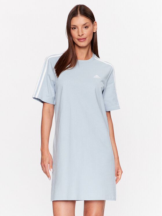 Adidas Vestito da giorno Essentials 3-Stripes Single Jersey Boyfriend Tee Dress IL3315 Blu Loose Fit