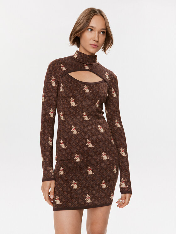 Guess Vestito da giorno W3BK73 Z3AN0 Marrone Bodycon Fit