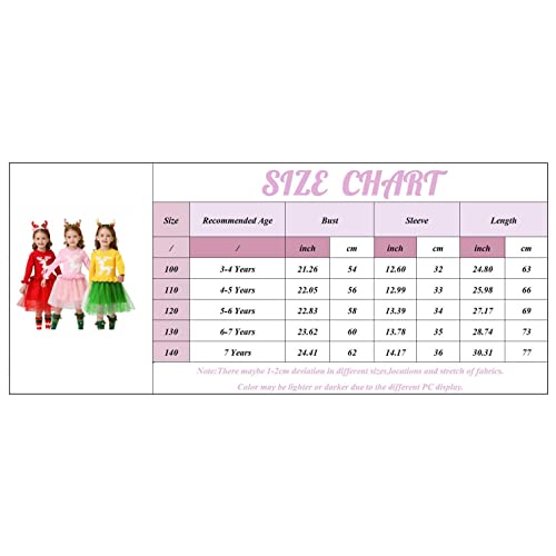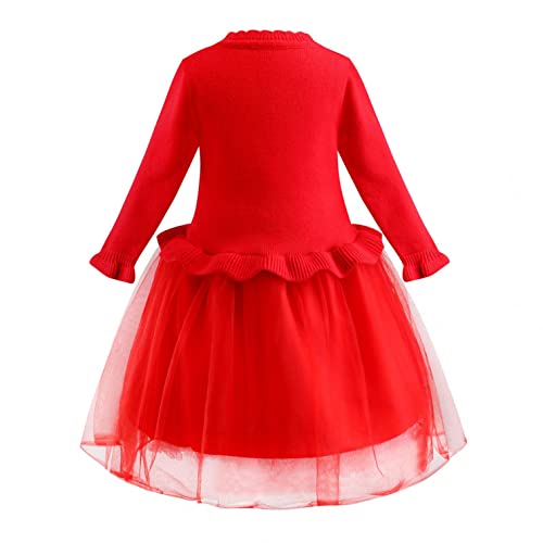 Vestito di Natale da bambina, a maniche lunghe, abito da principessa, abito da festa con cervo, fiocco di neve, vestito invernale caldo, maglione con fascia per capelli (rosso 3, 100)