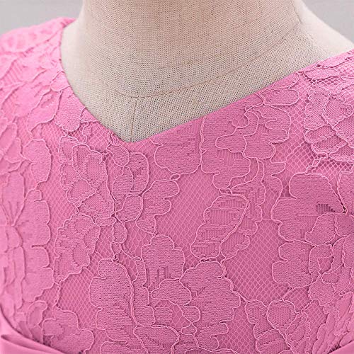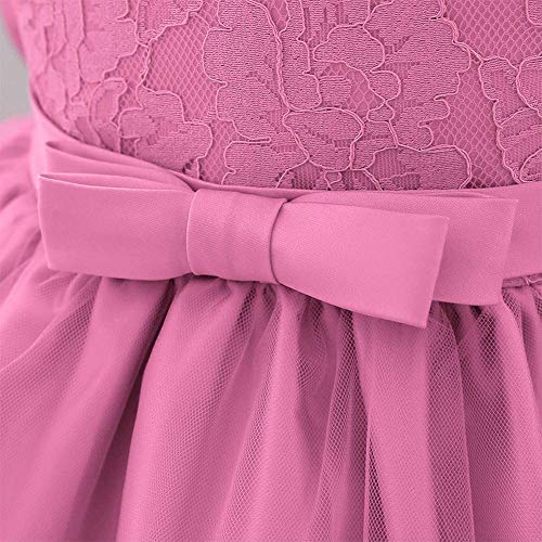 Vestito da Ragazza Festa in Pizzo per Bambini Abiti da Sposa Damigella d'onore Bowknot Tutu Abito da Compleanno Principessa Senza Maniche Formale Battesimo Sera Cerimonia Vestiti Rosa Scuro 4-5 Anni