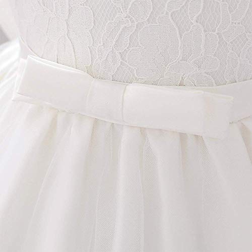 Vestito da Ragazza Festa in Pizzo per Bambini Abiti da Sposa Damigella d'onore Bowknot Tutu Abito da Compleanno Principessa Senza Maniche Formale Battesimo Sera Cerimonia Vestiti Bianco 5-6 Anni