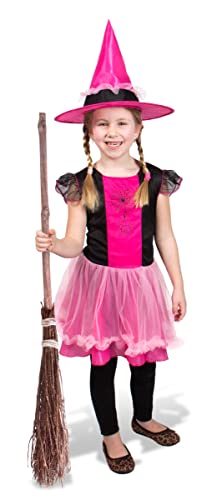 Vestito da strega con cappello rosa - taglia S per bambini.