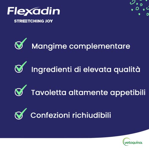 AIUTA A PRESERVARE L'AGILITÀ DEL TUO AMICO A 4 ZAMPE. Utilizzati con costanza, fin dalla più tenera età, i mangimi complementari della gamma Flexadin contribuiranno a mantenere il vostro animale attivo e agile nel corso degli anni.