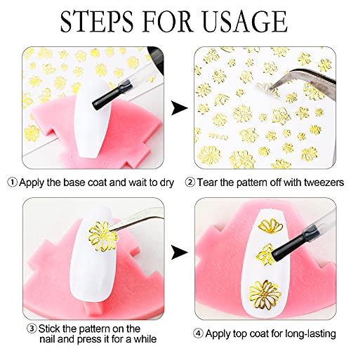 Facile da applicare:Decalcomanie per nail art metalliche 3D autoadesive, usa una pinzetta (non inclusa) per raccoglierla e attaccarla alle unghie e alle unghie dei piedi. Si attaccherà saldamente sulle unghie.