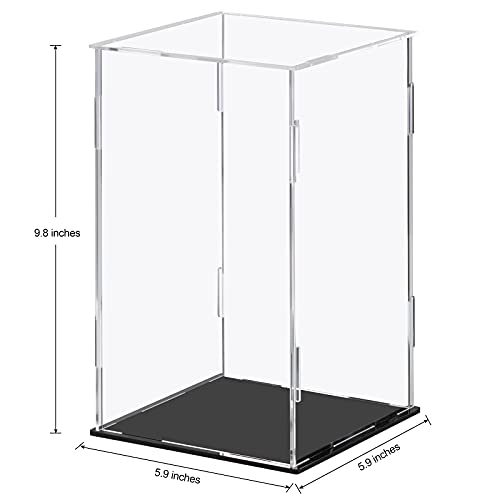 Vetrina in acrilico Scatola espositiva trasparente con cubo acrilico da appoggio a specchio per oggetti da collezione, action figure, figurine in miniatura Deposito giocattoli (Nero, 15x15x25cm)