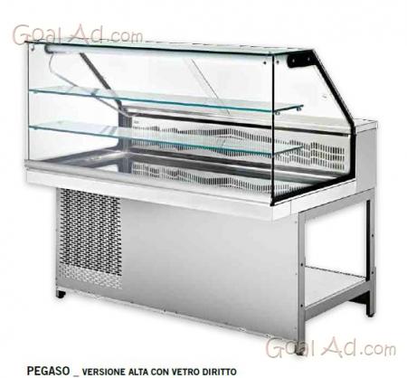 Vetrina espositiva refrigerata con vetri dritti e ripiano intermedio in acciaio con possibilità di rivestirla dimensioni: 1000x873x1330 mm
