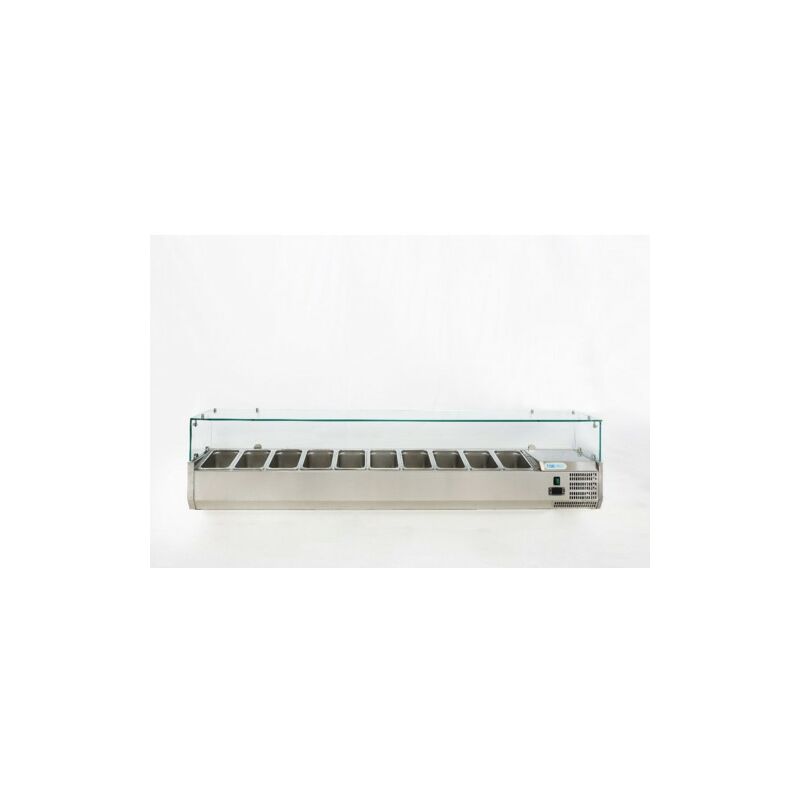 Codice RS9791 - Vetrina refrigerata portabacinelle per pizzeria, modello FO-G-VRX2000-330, dimensioni cm. 200x33x43.5 (lxpxh), temperatura di esercizio +2/+8 °C, 230 volt, 145 watt, capacità n.10 bacinelle GN1/4 (non comprese nella fornitura). Vetrina refrigerata statica interamente realizzata in acciaio inox. Vetri di protezione. Controllo elettronico della temperatura. Adatta per il contenimento di bacinelle gastronorm, inox o in policarbonato. Gruppo incorporato.