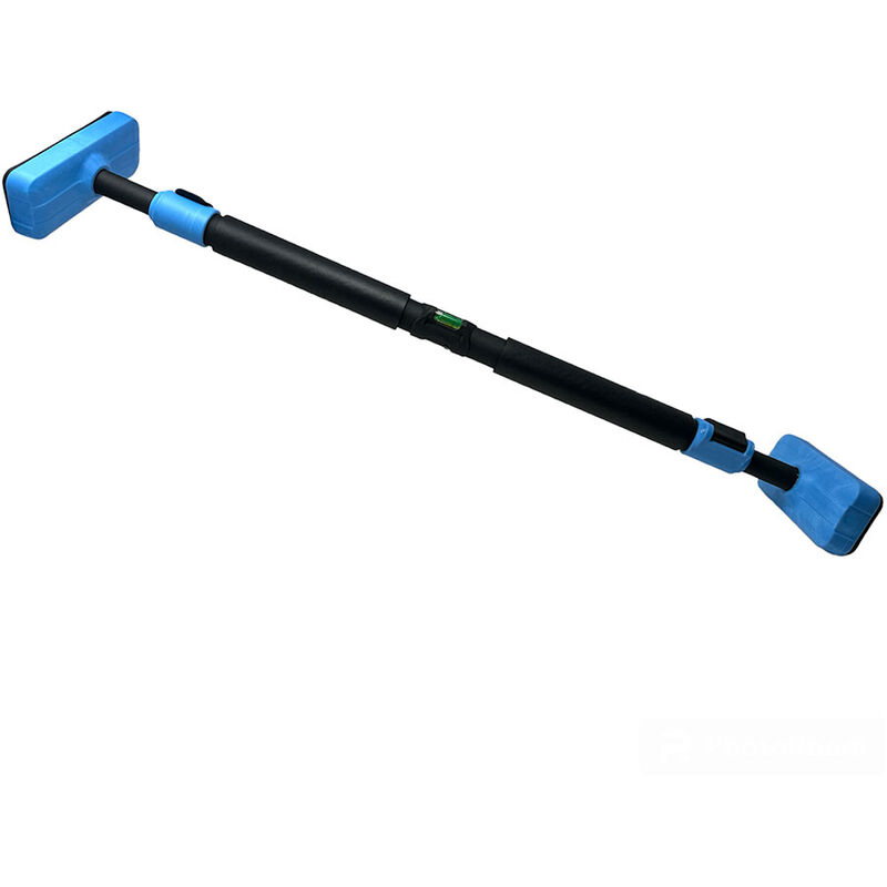 Barra per trazioni da porta regolabile da 95 a 120 cm, utile per rinforzare le varie zone del tronco del corpo come Bicipiti, Dorsali, Tricipiti e la muscolatura addominale. Realizzata con le estremità in gomma che permettono sia di non rovinare il telaio sia di avere una presa salda e sicura durante l'esercizio. Inoltre, questo nuovo modello è stato progettato per essere installato e rimosso facilmente senza forare ed è dotata di una livella centrale, removibile all'occorrenza, per montarla in modo preciso e lineare. Carico max supportato 200 kg Rivestita in morbida gomma antiscivolo per una presa sicura. Colore: blu o rosso in base alla disponibilità. Peso: 2.6 kg