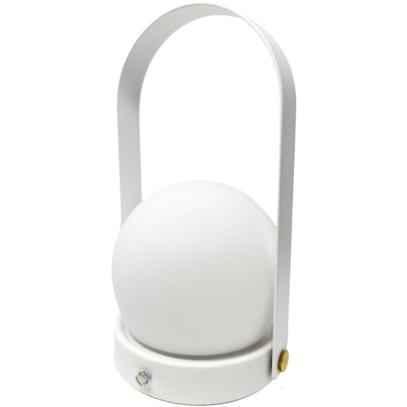 Lampada a led da tavolo, dallo stile minima ed elegante. È composta da una struttura bianca in metallo, una sfera in vetro e con manico orientabile per il trasporto. Se necessario, la colorazione della luce può essere variata in tre fasi calda, fredda e naturale tramite l'interruttore integrato. Questa lampada LED senza fili con batteria integrata si ricarica tramite USB (Cavetto incluso) es ha una autonomia di circa 7 ore. Potenza: 1 watt Equivalente a 10 watt Flusso luminoso: 100 lm Fascio luminoso: 360° Tre colorazione di luce: Calda - Fredda e Naturale Tempo di ricarica: 3 ore Autonomia: 7 ore circa Dimensioni: 24x14 cm Peso: 700 Gr