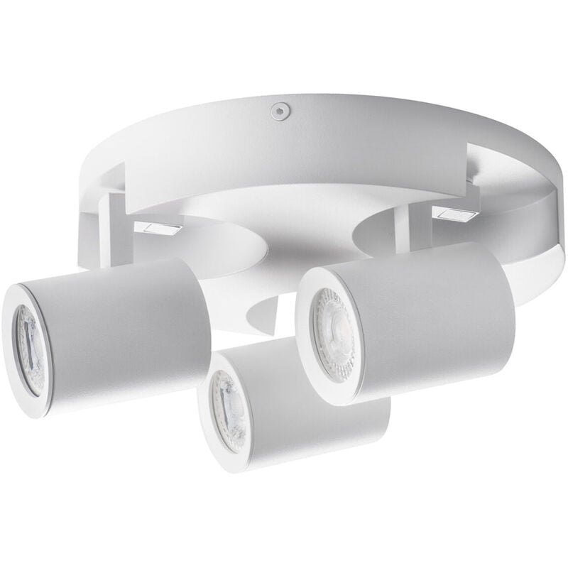 Plafoniera moderna adatta per installazioni a soffitto o parete dotata di 3 diffusori orientabili con lampada intercambiabile attacco GU10, ideale per l'illuminazione di ingressi, corridoi, cucine moderne, uffici, negozi, vetrine. Facile da installare per il fissaggio a soffitto o parete, i diffusori sono orientabili in modo indipendente consentendo di direzionare la luce secondo le proprie esigenze. Colore: Bianco Tipo di attacco: GU10(faretti non inclusi) Materiale: Lega di alluminio Tensione di ingresso: AC220-240V 50/60Hz Dimensioni: 10,8x22 cm Diametro diffusore:5,8 cm Peso: 890 gr