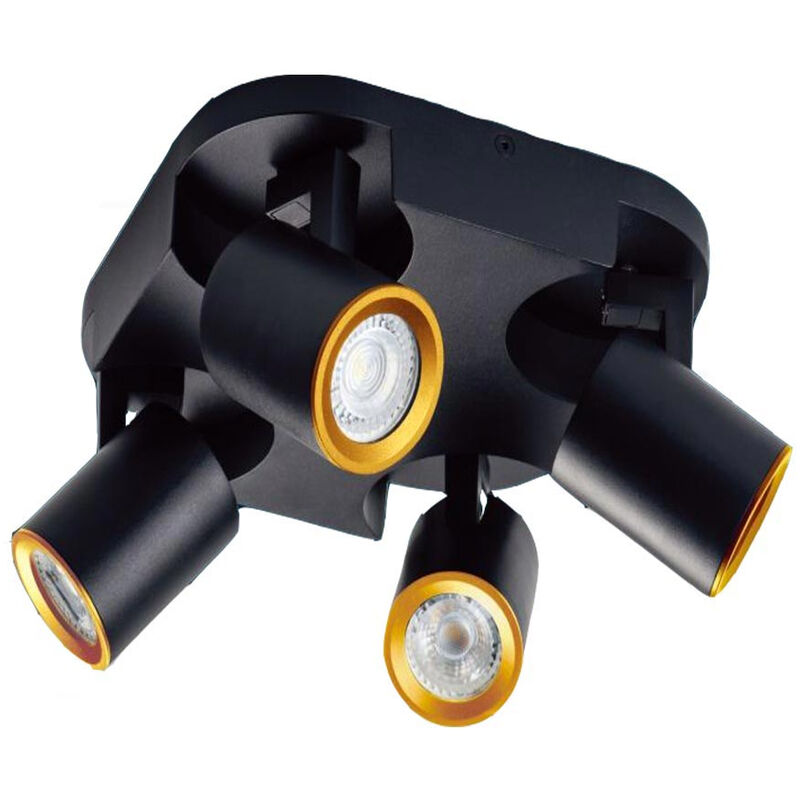 Plafoniera moderna adatta per installazioni a soffitto o parete dotata di 4 diffusori orientabili con lampada intercambiabile attacco GU10, ideale per l'illuminazione di ingressi, corridoi, cucine moderne, uffici, negozi, vetrine. Facile da installare per il fissaggio a soffitto o parete, i diffusori sono orientabili in modo indipendente consentendo di direzionare la luce secondo le proprie esigenze. Colore: Nero Tipo di attacco: GU10(faretti non inclusi) Materiale: Lega di alluminio Tensione di ingresso: AC220-240V 50/60Hz Dimensioni: 10,8x22 cm Diametro diffusore:5,8 cm Peso: 1,100 kG