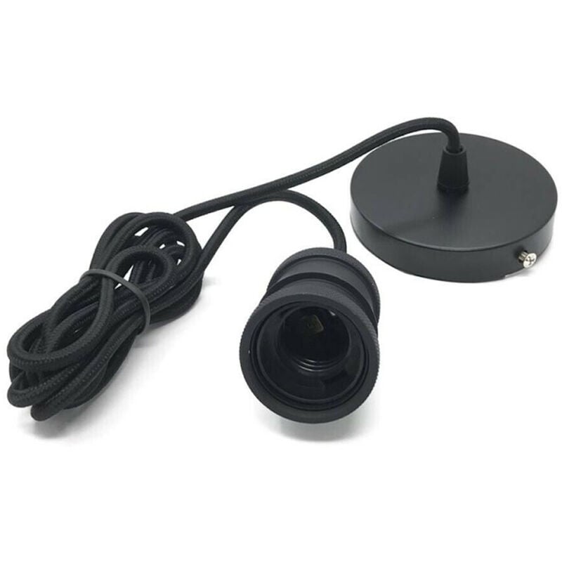 Portalampada in alluminio e corda per lampadine con attacco E27. Una moderna e creativa idea pensata come sostituzione ai classici lampadari o plafoniere a soffitto per l'illuminazione di camerette, corridoi, cucine e qualsiasi altro ambiente. Lunghezza cavo + base 2 metri regolabile in base alle esigenze con blocca cavo all'estremità, Attacco E27 (lampadina non inclusa), Tensione AC230V 50-60 hz Materiale: alluminio e cavo in corda 2x0.5mm Colore: nero Viti per il fissaggio incluse nella confezione
