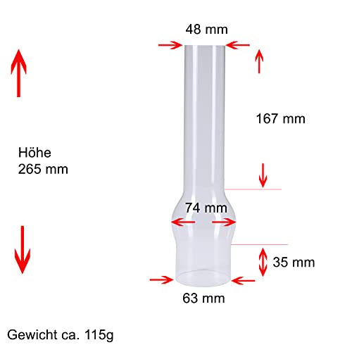 Vetro di ricambio per lampada a petrolio, diametro 63 mm, altezza 265 mm
