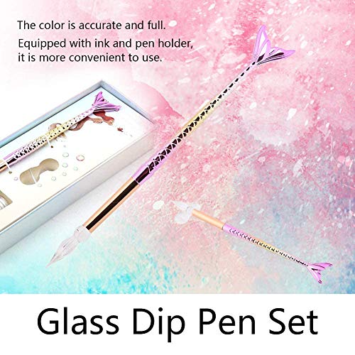 Vetro Dip Pen firma forma sirena penna penna stilografica con l'inchiostro caso tuffo cremagliera per il regalo,Rosa