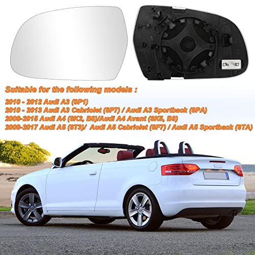 Vetro a Specchio Sostituzione Vetro per Audi A3 8P A4 8K A5 8T Specchietto Retrovisore Riscaldabile Specchietto Retrovisore Laterale in Vetro (L)