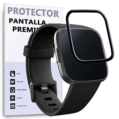 REY Vetro temperato 3D per Fitbit Versa 2, nero, protezione schermo di alta qualità, protezione completa, 3D, 4D, 5D