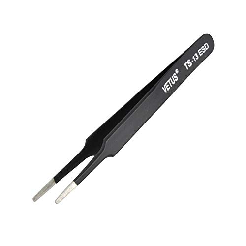 Vetus TS-13 ESD - Pinzette antistatiche in acciaio INOX con punte tonde piatte per strumenti da collezione Philately