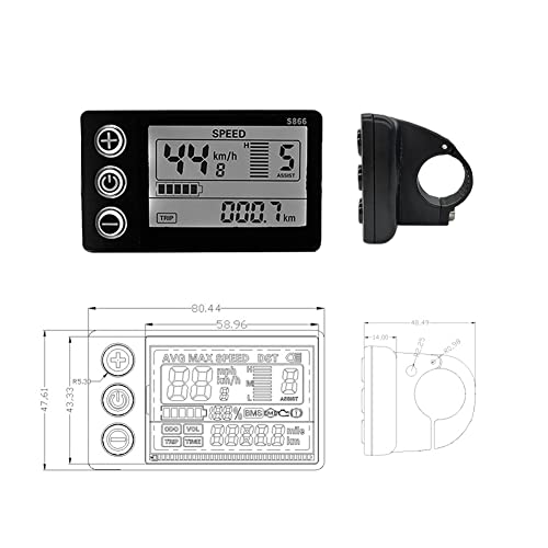 Veumoie Display per Bicicletta Elettrica 24V/36V/48V Display LCD Impermeabile S866 Pannello di Controllo Cruscotto per Bicicletta Elettrica E-Bike