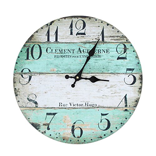Vevendo, Orologio da parete - Orologio da cucina retro in stile di design shabby chic, rustico o antico, in legno, con ampio quadrante in MDF, diametro: 34 cm, Clement