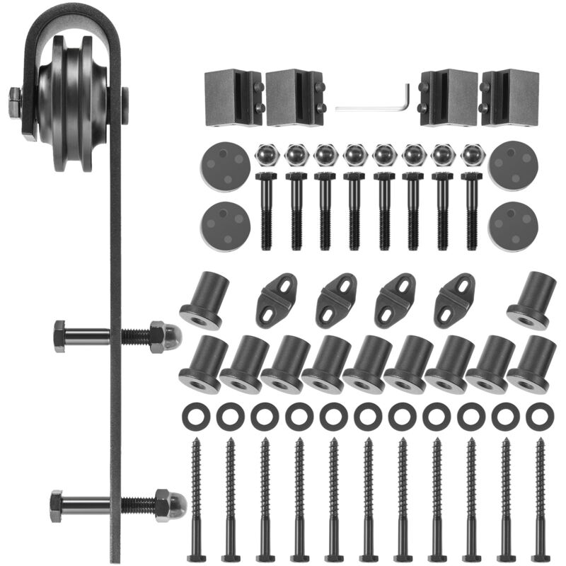 Kit di Binario per Porta Scorrevole Un kit di binario per porte scorrevoli aiuta a formare un po' di privacy a uno spazio aperto o dividere uno spazio separato. È realizzato in acciaio al carbonio di alta qualità e resistente, sicuro e affidabile con rivestimento a polvere e capacità di carico di 150kg. Anti-salto, guida a pavimento e fermaporta sono utili per mantenere la stabilità. Dimensione adatta per porta Acciaio al carbonio robusta Dettagli per scorrimento liscio Disegni pratici Caratteristiche principali Dimensioni Adatte per Porte: il binario per porta scorrevole da 396cm dotato di una capacità di carico da 150kg. La lunghezza del binario dovrebbe essere il doppio della larghezza della porta. Pertanto, la larghezza massima della porta è 198cm e lo spessore adatto della porta è di 35-45 mm. Sarebbe meglio lasciare uno spazio di 15 cm sopra la porta. Acciaio al Carbonio Resistente: il binario per porta scorrevole è particolarmente progettato per far scorrere le porte in modo