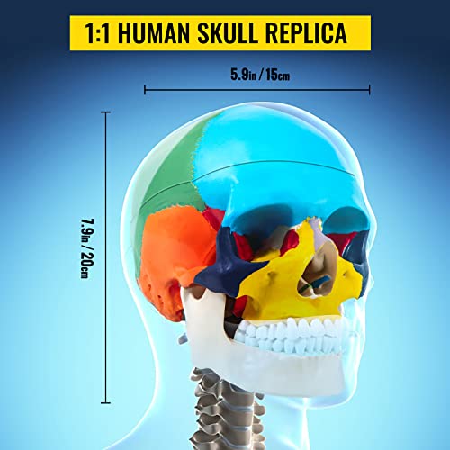 VEVOR Cranio Scomponibile, 8 Parti Colorati Cranio Modello Didattico, Modello di Campione di Cranio in PVC di Alta Qualità, Modello di Cranio Umano Medico, Modellino di Teschio, Facile da Montare