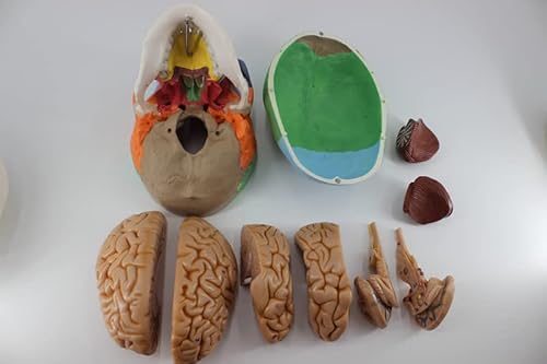 【8 CERVELLI RIMOVIBILI】 - Questo Modello Anatomico di Cranio può essere diviso in 8 pezzi, mostra chiaramente le strutture anatomiche del cervello umano. Questi pezzi sono collegati con magneti nascosti, che sono facili da montare e smontare.