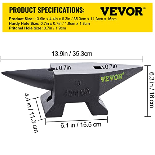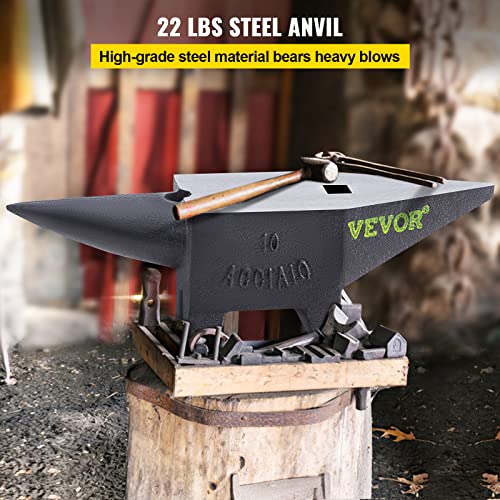 VEVOR Incudine da Fabbro in Acciaio con Corno Rotondo da 22 LBS, Incudine in Acciaio con 2 Fori da 10 KG per Lavori in Metallo, Incudine Fabbro per Rivettare, Appiattire, Forgiare e Formare Metallo