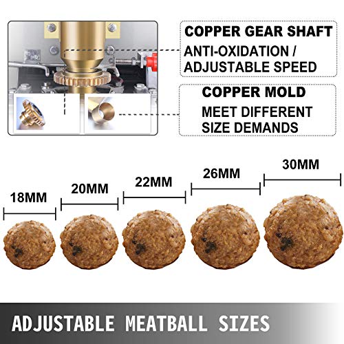【5 MODELLI IN RAME INCLUSI】 - Sono disponibili cinque set di modelli, in grado di realizzare polpette con un diametro di 18/20/22/26/26/30 mm. I modelli sono realizzati in rame puro, facili da montare, smontare e pulire. Un tubo dell'acqua attaccato per evitare che lo stampo si attacchi alla carne.
