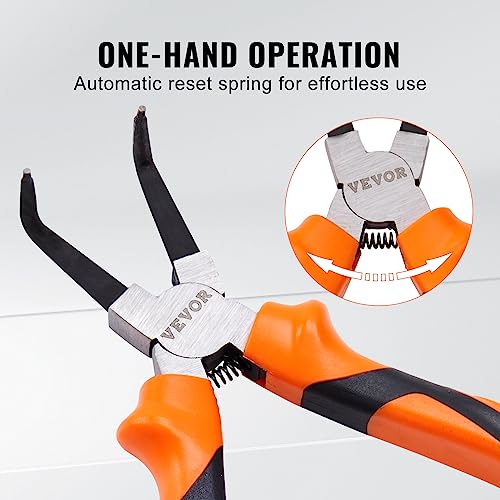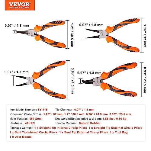 VEVOR Set di Pinze 4 Pezzi per Anelli Elastici Esterni Interni in Acciaio al Carbonio, Set di Pinze in Acciaio 45# Durezza 42HRC 4 Pezzi con Borsetta Portatile da Officina Garage per Lavori Meccanici