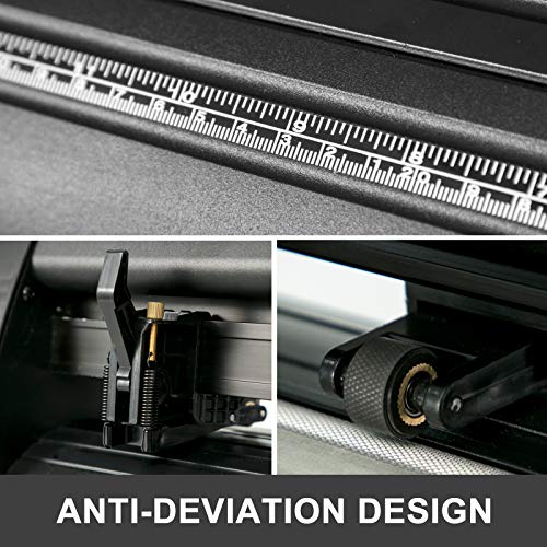 【CAPACITÀ DI TAGLIO】 - Taglierina in vinile da 14 pollici con avanzamento carta massimo di 350 mm (13,8 "), larghezza di taglio massima di 285 mm (11,2"), precisione di taglio di +/- 0,01 mm (0,0004 ") e precisione di alimentazione della carta di 3 m (118" ).
