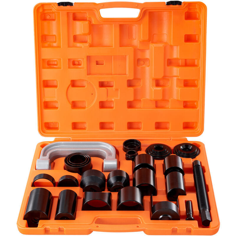 Kit Pressa per giunto sferico da 23 pezzi Trattamento Termico a 900°C & Acciaio al Carbonio Potente & Impermeabile Il kit di attrezzi per giunti sferici da 25 pezzi è realizzato in acciaio al carbonio ad alte prestazioni e trattato con un processo termico professionale per la massima resistenza. Kit di strumenti ad alta compatibilità Struttura robusta Materiale potente Protezione per strumenti Accessori inclusi Kit di pressatura per giunto sferico da 23 pezzi Il kit di attrezzi per giunti sferici da 23 pezzi è realizzato in acciaio al carbonio ad alte prestazioni e trattato con un processo termico professionale per la massima resistenza. Caratteristiche principali Kit di Strumenti ad Alta Compatibilità: il kit di attrezzi per giunti sferici da 23 pezzi è progettato per adattarsi alla maggior parte dei veicoli a 2 ruote motrici (2WD) e 4 ruote motrici (4WD), compresi i veicoli con assali anteriori Dana 28, 30, 35, 44 o 60. È compatibile con i marchi automobilistici più diffusi come