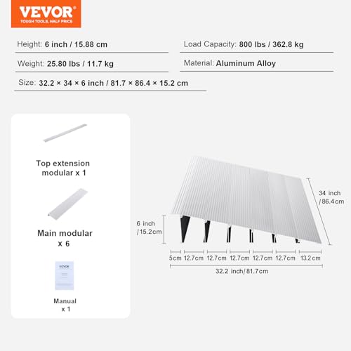 VEVOR Rampa per Soglia in Alluminio Altezza Regolabile 1,9-15,9 cm, Rampa per Soglia con Passacordolo in Alluminio per Dislivelli Capacità Carico Max. 360kg, Passasoglia in Alluminio per Ingresso