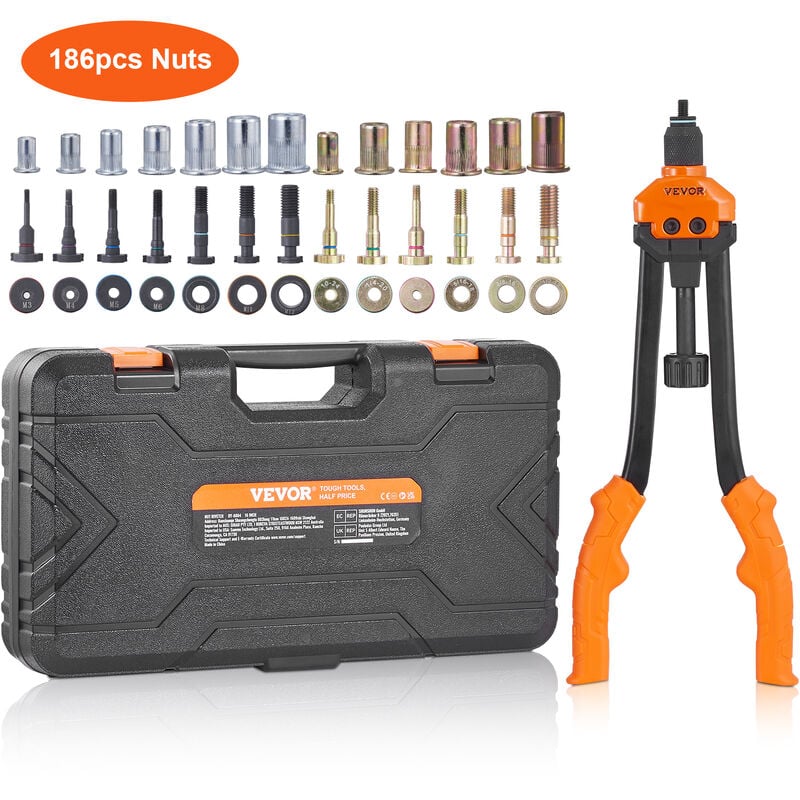 Pinza Rivettatrice Manuale di VEVOR Migliora il tuo lavoro di rivettatura. Le pinze per rivetti sono dotate di un manico lungo 410 mm per massimizzare la leva e facilitare la rivettatura. Che si tratti di progetti fai da te o di produzione professionale, si adatta a vari materiali e superfici, fornendo servizi efficienti. Scopri la potenza dello strumento di rivettatura versatile, durevole e facile da usare! Pulsante per la deviazione rapida Materiale robusto & durevole 13 Dimensioni di mandrini & dadi a crimpare Facile da usare Versatile per tutti i lavori & tutte le superfici Migliora il tuo lavoro di rivettatura con le pinze rivettatrici VEVOR Le nostre pinze per rivetti sono dotate di un manico lungo 410 mm per massimizzare la leva e facilitare la rivettatura. Che si tratti di progetti fai da te o di produzione professionale, si adatta a vari materiali e superfici, fornendo servizi efficienti. Caratteristiche principali Manopola per Deviazione Rapida: le pinze rivettatrici da 410