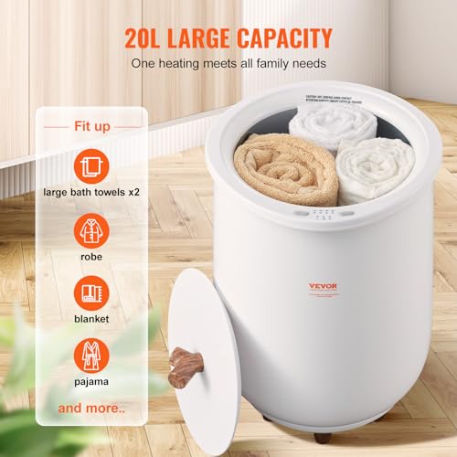 VEVOR Scaldasalviette Secchio Verticale 20 Litri per Bagno SPA Max. 2 Asciugamani Potenza Nominale 465 W Spegnimento Automatico Tempo di Riscaldamento Regolabile 4 Livelli, Riscaldatore Asciugamani