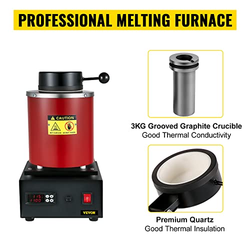 VEVOR Sistema di Controllo PID Forno di Fusione Macchina, Modello GF1100ND3, capacità 3 kg 220 V 1750 W 1150 ℃ Forno Fusore per Oro per La Lavorazione di Metalli Preziosi Come Oro, Argento e Rame