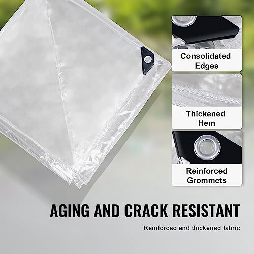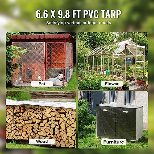 VEVOR Telone Impermeabile Trasparente in PVC Esterno 2 x 3m Garage, Officina, Giardino, Cortile, Telone Copritutto Occhiellato 2,65 kg, Telone Impermeabile per Auto Barche Uso Esterno con Occhielli
