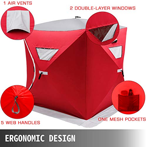 VEVOR Tenda da Pesca sul Ghiaccio 228x228x203cm, Riparo Portatile per 3 Persone, Tenda da Pescare per Riparo del Ghiaccio con 4 Picchetti di Terra e 4 Guy Rope Uso per Pesca, Campeggio ed Escursioni