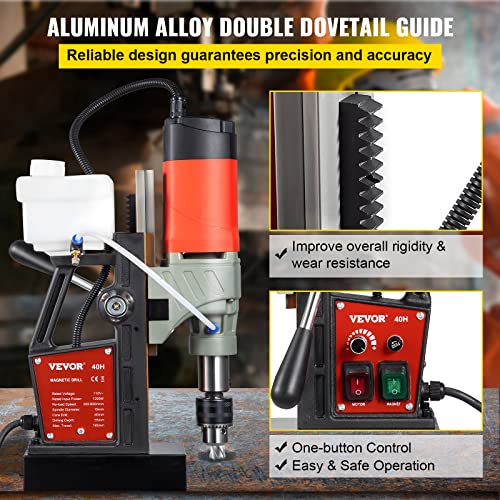 VEVOR Trapano a Colonna Elettronico 220 V, Trapano Base Magnetica con Doppia Guida a Coda di Rondine, Trapano Industriale Colonna Magnetico Macchinario per Ferrovie, Ingegneria e Elettrico Costruzioni