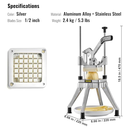 VEVOR Tritatutto Manuale Uso Commerciale Multifunzione in Acciaio Inox Lama 1/2 Pollici 1,27 cm, Tagliapatate Bastoncini di Frutta con 2 Lame di Ricambio, Tritaverdure Manuale Tritatutto per Frutte