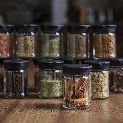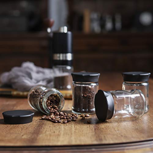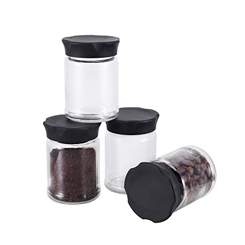 Vevouk set di 4 barattoli per spezie, mini barattoli in vetro con coperchio nero, 4 barattoli per alimenti da cucina, piccoli caffè, tè, spezie