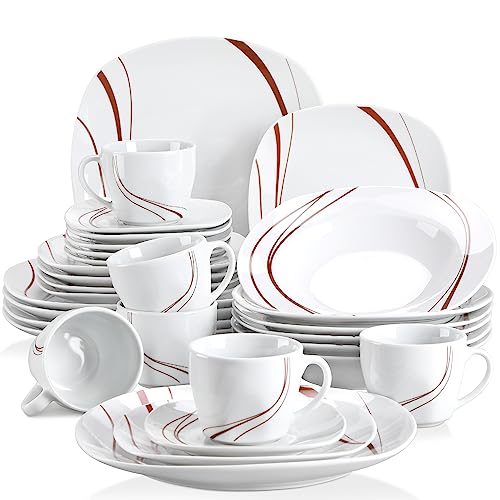 VEWEET Bonnie Piatti Servizio in Porcellana Stoviglie Set 30 Pezzi con 6 Tazza 175 ml, 6 Piattini, 6 Piatti, 6 Piatti Fondi e 6 Piatti da Dessert per 6 Persone