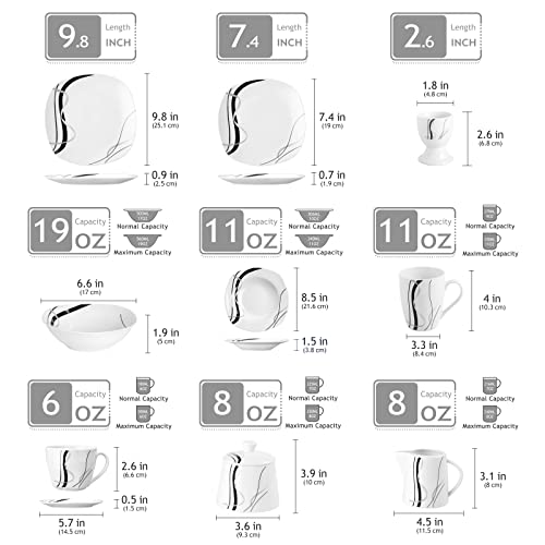 VEWEET FIONA Piatti Servizio Quadrati Moderni in Porcellana 100 Pcs con Piatti Piani, Piatti da Dessert, Piatti Fondi, Ciotole, Tazze, Mugs, Piattini, Portauova, Zuccheriere e Lattiere per 12 Persone