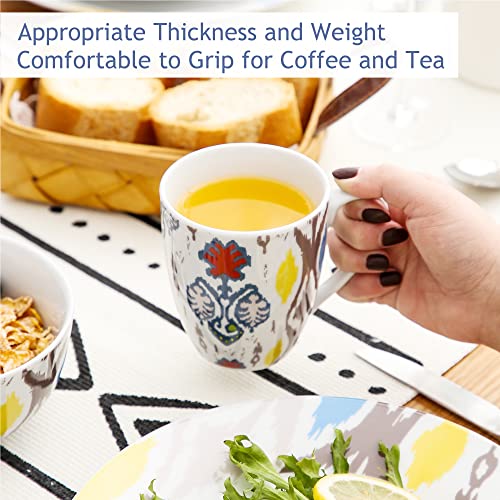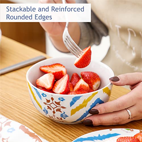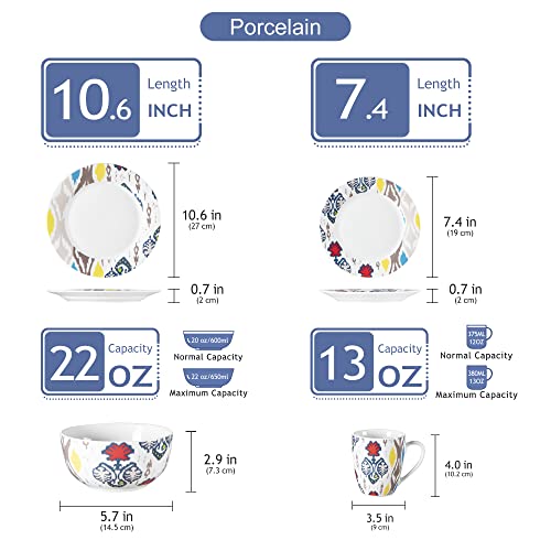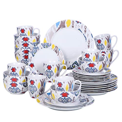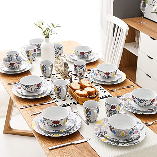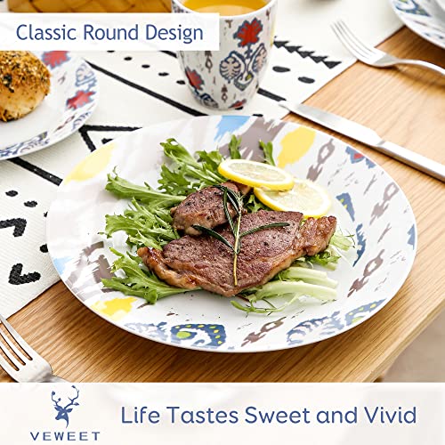 VEWEET Servizio di Piatti in Porcellana per 8 Persone Servizio Combinati 32 pcs con 27 CM Piatti Piani, 19 CM Piatti da Dessert, Tazze 380 ML e Ciotole 650 ML per Cereali, Motivo Colorato Serie BETULA