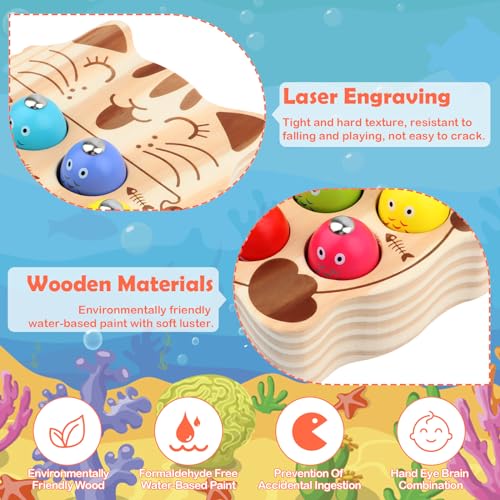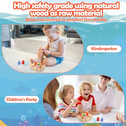 Giochi di Pesca in legno: Questo gioco di educazione precoce alla pesca magnetica ha una potente funzione di assorbimento magnetico per catturare facilmente i pesciolini. I pesci colorati e ricchi di effetti tridimensionali simulano la pesca reale. Migliora la capacità di riconoscimento dei colori e la capacità di pensiero dei bambini.