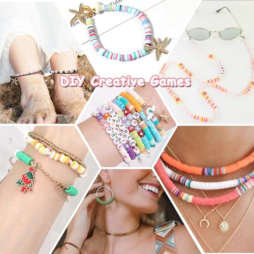 ❤[Perline per braccialetto] Il kit per braccialetti fatti in casa contiene circa 4600 perline di argilla, tra cui perline di lettere e vocali dalla a alla z, ciondoli, chiusura a moschettone, ecc. Gli strumenti includono spago trasparente, forbici, pinzette, ecc.