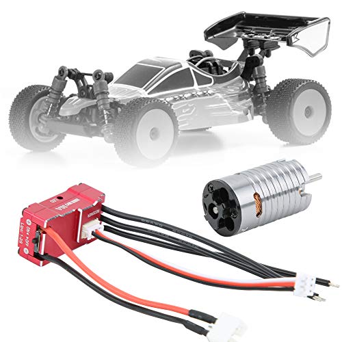 VGEBY RC Motor Set, 1: 24/1: 28/1: 32 Scala 2 Poli Metallo Telecomando Veicolo Motore brushless + 18A Rosso ESC Set RC Auto Ricambio Ricambio Accessorio(Colore Titanio 7500KV)
