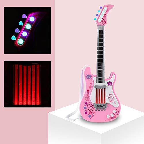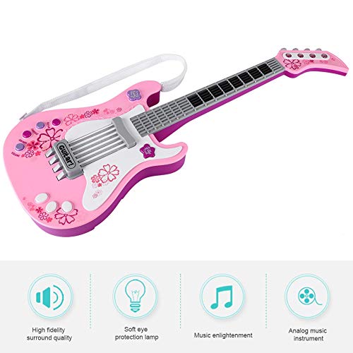 VGEBY1 Chitarra Giocattolo, Multi-Funzionale Giocattolo per Chitarra Basso con Luce per Bambini Bambino (Rosa)
