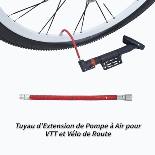 ACCESSORI IDEALI: II tubo di estensione della pompa per biciclette è universale e pratico, come accessori per pompe valvole per uso permanente, ideale per pompare pneumatici per biciclette.